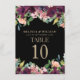 Menu Números de Tabela Negra Floral Negra