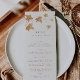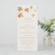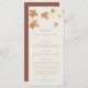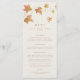 Apaixonem-se por este design moderno e mínimo para festas de noivado de outono, chás de panela, chás de fraldas, jantas de ensaio ou casamentos. Design limpa e minimalista apresenta um fundo macio e esbranquiçado com folhas de aquarela em cores de outono. Personalize este cartão de menu com as seleções de jantar por curso e personalize com o nome e a data do evento.