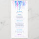 O cardápio azul em cascata com arte floral em aquarela. Moderno tipo de videira floral abstrata azul em aquarela para cardápio de casamento ou jantar ou cardápio de evento especial. Edite este cardápio com seu próprio cardápio e pratos. Moderno cardápio azul, aqua e rosa com arte solta abstrata em aquarela. Ideal para casamentos de primavera com glicínias ou flores azuis e casamentos modernos rosa e azul ou outros eventos temáticos azuis. © Desenho e pintura em aquarela por Sarah Trett para www.mylittleedenweddings.com no zazzle.