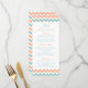 Simples mas elegante, a coleção moderna de casamentos de chevron é um design espantoso que apresenta uma adorável impressão zig-zag em uma cor branca, pêssego e branca, o que é perfeito para qualquer celebração moderna de casamento. Estes cartões de menu podem ser personalizados para a sua ocasião especial e fariam o menu perfeito para o seu casamento, chá de panela, festa de noivado, festa de aniversário e muitas outras ocasiões especiais. Adicione seu texto personalizado a este design usando as caixas "Editar este modelo design" no lado direito do item, ou clique no botão azul "Personalizar" para organizar o texto, alterar as fontes e cores e também adicionar informações ou imagens adicionais a este design.