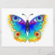 Arco-íris, realista, desenhado artisticamente, borboleta pavão de cores brilhantes com asas detalhadas texturizadas sobre fundo branco. Borboleta-arco-íris.