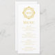 Ornamentado Floral Monograma Elegante Dourado de Casamento apresenta suas iniciais personalizadas em monogramas elegantes, cercadas por um quadro floral ornamental e uma camada de texto personalizada. Adicione um pouco de estilo e sofisticação à sua experiência de jantar de casamento com estes menus refinados. Criado pelo Evco Studio www.zazzle.com/store/evcostudio