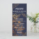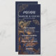 Este elegante cartão de menu apresenta um fundo azul marinho adornado com ilustrações florais e borboletas de ouro, criando um tema romântico e sofisticado. Personalize com seus detalhes de casamento e encontre designs correspondentes na minha loja "DreamHut".