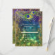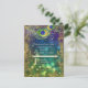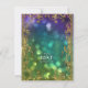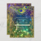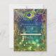 Correspondência da placa de resposta RSVP com opções de menu simples. Este design é feito com penas de pavão pintadas à mão com aquarela pintada à mão, adornadas com joias de diamante desenhadas graficamente (NOTA: trata-se de um convite impresso à mão, não há joias reais, brilho dourado, folha metálica ou tinta metálica usada) sobre um brilho colorido de boque, luzes cintilantes em fundo profundo, roxo, azul, aqua e verde. Altere facilmente o texto usando os campos modelo fornecidos. Arte de uma artista internacionalmente licenciada, Audrey Jeanne Roberts, copyright.