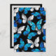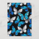 Borboletas realistas, azuis e brancas têm um padrão uniforme em fundo preto.