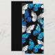 Borboletas realistas, azuis e brancas têm um padrão uniforme em fundo preto.