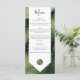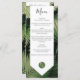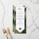 Essa design apresenta as folhas tropicais de palma como pano de fundo para um elemento de estilo moderno. O belo verde das palmas deixa o elogio à elegante estrutura branca moderna no primeiro plano. As iniciais personalizadas usando tipografia de script criam uma fusão perfeita de modernos e quic. Lave design verde ideal para um casamento de destino de praia tropical. Design de cardápio de casamento único com elementos modernos. Os convites de casamento e outros artigos de papelaria também estão disponíveis.