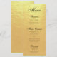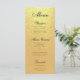 Um menu com papel dourado falso e caligrafia preta elegante para títulos e subtítulos. Todo o texto é preto. Recomendado para casamentos com cores preto e dourado, mas pode ser usado em outras ocasiões.