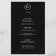 Este menu simples, mas elegante apresenta um design monograma moderno a preto. Adicione seu texto personalizado usando o formulário modelo. Use os menus avançados de edição, acessados escolhendo "personalizar mais" na parte inferior do modelo, para alterar as cores, a fonte e o layout.