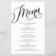 Este design de tendência apresenta um cabeçalho de script com florescimento. Use a modelo para preencher suas informações. O recurso "Personalizar mais" pode ser usado para alterar a fonte (tamanho, estilo, cor) e adicionar mais linhas de texto, alterar o layout ou adicionar texto ao verso. O papel é pesado e faz um excelente escolher um menu!