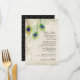 PALETA DE CORES: Preto, bege, creme, dourado, azul, verde e roxo. COLEÇÃO DE DESIGN: Cartão de menu de jantar ou evento formal correspondente. Esta é parte de Conjuntos de Convites de Casamento de produtos correspondentes completos. Estes Convites de Casamento de Penas de Pavão modernos e contemporâneos são modernos, elegantes e sofisticados. A arte é de arte original em aquarela pintada à mão por Audrey Jeanne Roberts. Há um fundo de renda texturizada, manchada de chá, envelhecida, estilizada, penas de pavão modernas e uma borda lateral de cor correspondente. No verso está o texto do convite de casamento personalizado, um conjunto de penas de pavão com floreios de rolos desenhados à mão em bege e um padrão damasco sutil com desenho de linha caligráfica ond
