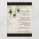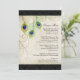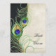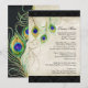 PALETA DE CORES: Preto, bege, creme, dourado, azul, verde e roxo. COLEÇÃO DE DESIGN: Cartão de menu de jantar de recepção ou evento formal correspondente. Esta é parte de Conjuntos de Convites de Casamento de produtos correspondentes completos. Estes Convites de Casamento de Penas de Pavão modernos e contemporâneos são modernos, elegantes e sofisticados. A arte é de arte original em aquarela pintada à mão por Audrey Jeanne Roberts. Há um fundo de renda texturizada, manchada de chá, envelhecida, estilizada, penas de pavão modernas e uma borda lateral de cor correspondente. No verso está o texto do convite de casamento personalizado, um conjunto de penas de pavão com floreios de rolos desenhados à mão em bege e um padrão damasco sutil de desenho de linha caligr