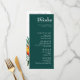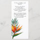 Apresentando o Menu Casamento "Bebidas", um guia sofisticado e personalizado para sua celebração. A frente do menu apresenta um fundo verde escuro adornado com uma seleção curada de vinhos, coquetéis, cervejas e espíritos, garantindo uma experiência encantadora para seus convidados. O cabeçalho elegante "As Bebidas" define o tom, criando uma apresentação agradável. Abaixo das seleções de bebidas, há um espaço designado para nomes de casais e a data, adicionando um toque personalizado a esse detalhe essencial do casamento. Este toque de personalização permite que o menu sirva como uma manutenção memorável para o seu dia especial. Indo para o lado oposto, um pássaro solteiro do paraíso agarra um fundo branco sereno, criando uma estética visualmente impressionante e tropical. Aqui, você tem a liberdade de incluir texto personalizável, seja uma mensagem especial, uma citação, ou detalhes adicionais sobre sua história de amor. O Menu Casamento "As Bebidas" não só serve como um guia prático para seus convidados, como também duplica como um elemento delicioso e personalizado que incorpora maravilhosamente a elegância tropical da coleção Birds of Paradise Bliss nas suas festividades de casamento.