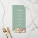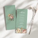 Elevem sua experiência de jantar de casamento com nosso "Elegante Pastel Sage Green Blush Pink Menu". Este cardápio maravilhosamente desenhado apresenta cor d'água realística, penteados cor-de-rosa penteado, complementados por delicadas folhas verdes de sábio, todas colocadas sobre um fundo verde de sábio macio. A combinação do guião boho e das elegantes fontes minimalistas adiciona um toque de sofisticação às suas mesas, perfeitamente adequadas para um casamento "boho-chic" ou "rustic-themed". Este cardápio não só fornece aos seus convidados uma encantadora prévia das delícias culinárias que virão, como também adiciona um toque encantador e elegante à decoração do seu casamento.