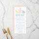 Menu folha única, tamanho: 10,16 x 22,86 cm, papel: Semi-brilho Básico