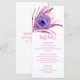 Menu Pena de Pavão Chic Brilho Rosa Festa Bat Mitzvah