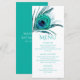 Este design apresenta uma elegante pena de pavão brilhante em turquesa sobre um fundo branco com as informações do menu da sua Bat Mitzvah abaixo. Personalize editando o texto nas caixas de texto. Criado para você pelo Evco Studio www.zazzle.com/store/evcostudio #mitzvah #batmitzvah #planejadordeeventos #mazeltov #judaico #mitzvahswag #festa #vidajudaica #casamento #kosher #mitzvahlife #eventoscorporativos #festaMitzvah #planejadordefestas #planejamentodefestase #garotabatmitzvah #planejadorMitzvah #planejamentoMitzvah #cardápios