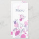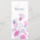 Pequenas pétalas de flores de confete, menus de casamento ou janto formal. Flor moderna e simples, de dupla face, com o menu de janto cor-de-rosa, roxo e azul escuro, estilo confetti pétalo. Desenhada e projetada exclusivamente por Sarah Trett para www.mylittleedenweddings.com