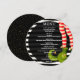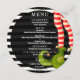 Cartões de menu redondos apresentam pernas de elfo em meias listradas e botas verdes em listras pretas e brancas e pontos dourados e seus detalhes em letras brancas chiques. Perfeito para uma festa de Natal, recepção de casamento, jantar de ensaio de casamento, festa de aniversário ou qualquer evento especial com jantar sentado. Personalize facilmente com o menu do seu jantar e detalhes. MUITAS CORES disponíveis em nossa loja.