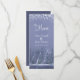 Lindas cinzas azuis, pinheiros de inverno e reflexos de lago, cardápio de janto de casamento ou cardápio de evento especial. Edite este menu de 4 cursos com suas próprias palavras. Ideal para casamentos no inverno ou eventos de cinzas azuis do lado do lago. © Design e pintura manual original de aquarela e guache em papel escuro por Sarah Trett para www.mylittleedenweddings.com no zazzle.