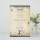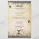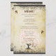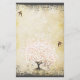 Whimsical Magical Tree of Love Pink Heart Leaf Tree on Tea Stainha Warm Silver Toned Metallic Paper com uma Sobreposição de Música de Folha Antica e algumas designs giras para melhorar as raízes do amor neste único convite de casamento da floresta...