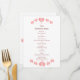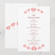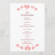 Pink hearts design wedding menu. Customise this heart menu with your wedding details. Should you require any help with customising then contact us through the link on this page. Pink heart design personalised wedding menu