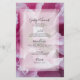 Personalize o bonito menu Pink Peony Flower Wedding com os detalhes da refeição que você servirá no almoço de chá de panela, festas de jardim ou janto de recepção de casamentos, adicionando a salada ou primeiro curso, entrada ou segundo curso e sobremesa ou terceiro curso. Personalize-o com os nomes da noiva e noiva, local e data. Este elegante cardápio de casamento florescente apresenta uma fotografia botânica pintada digitalmente de uma flor de pénia rosa magenta.
