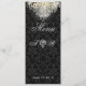 Menus de casamento PixDezines, um candelabro de cristal em damask preto com um traço de ouro no candelabro.com