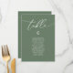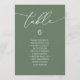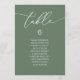 Cartão de Mesa de Assento de Janto de Casamento, Script Elegante Moderno. Personalize o texto e/ou remova e preencha com o tema da festa de casamento (verde-sábio).