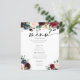 Menu Boho Burgundy e Blush. Este cartão é caracterizado por rosas e flores boho burgundy e blush com duas fontes modernas de alta classe que moldam as tendências dos eventos festivos atuais e futuros.