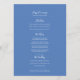 Lindo menu de casamento com ilustrações botânicas em aquarela em branco com um belo monograma entrelaçado de salsa, hartwort e centáurea e uma seleção de esboços de flores silvestres em torno de um arco azul centáurea na frente, azul no verso com sua escolha de menu de quatro pratos em texto branco. As flores são todas aquarelas pintadas à mão. Convite floral delicado com texto em escrita em branco com tons de verde, azul, roxo, malva e tons suaves de pêssego e amarelo. Personalize com suas iniciais, nomes e detalhes do menu. Outros itens correspondentes estão disponíveis ou podem ser criados sob solicitação. Pinturas originais de flores silvestres em aquarela e design por Sarah Trett para www.mylittleedenweddings.com