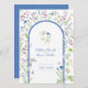 Lindo menu de casamento com esboços botânicos em aquarela em branco com um belo monograma entrelaçado de salsa, hartwort e centáurea e uma seleção de esboços de flores silvestres em torno de um arco azul centáurea na frente, azul no verso com sua escolha de menu de quatro pratos em texto branco. As flores são todas aquarelas pintadas à mão. Convite floral delicado com texto em caligrafia em branco com tons de verde, azul, roxo, cor-de-rosa e tons suaves de pêssego e amarelo. Personalize com suas iniciais, nomes e detalhes do menu. Outros itens correspondentes estão disponíveis ou podem ser criados mediante solicitação. Pinturas originais de flores silvestres em aquarela e design por Sarah Trett para www.mylittleedenweddings.com