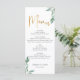 Menu Plano de Casamento de Folhagem Verde
