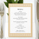 Crie seus próprios menus de mesa personalizados para um evento especial. A tipografia clássica e uma fronteira-chave grega adicionam elegância ao eterno à sua celebração — um padrão geométrico, semelhante ao labirinto, inspirado na antiga arte grega e romana. Esta modelo editável permite-lhe personalizar o texto para se adequar perfeitamente aos seus pratos ou cursos. Perfeito para uma festa de janto formal, almoço elegante, brunch, aniversário, casamento ou outro evento. Cores impressas: ouro e branco, com cinza escura.