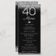 Celebre em estilo com nosso Menu de Janto aniversário de 40 anos de Ouros Elegantes em um tema preto-e-prata-chico. Perfeito para um Menu de Janto de Aniversário glamouroso, Menu de Evento ou Menu de Partido, este design adiciona brilho à sua celebração de marco. Com tipografia moderna com sotaques de diamante, este cartão de menu é ideal para jantas de aniversário, menus de aniversário ou reuniões elegantes. Personalize este cartão de menu de aniversário para corresponder à sua decoração, fazer-o como um cartão de menu de janto de ricos versátil.