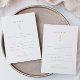 Elegante, simples, de ouro de folha e branco, de menu de Mesa de casamento Cartões de Janto plana, de 5 x 7", na caligrafia moderna do script. Você pode encontrar uma coleção de itens correspondentes e tamanho 4x9" em nossa loja VelvetPaperCo.