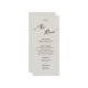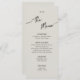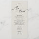 Menu plano para Boho Wedding. Pastéis elegantes combinados com design minimalista e toques pessoais criam uma atmosfera sofisticada mas formal.