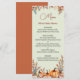 Eleve o seu chá de bebê com este menu personalizado com tema outonal, perfeito para o dia especial da Olivia. Com uma seleção de aperitivos gourmet, pratos principais e sobremesas, este menu é adornado com ilustrações elegantes de flores e abóboras. Delicie seus convidados com pratos como tartare de carne com aioli de alcaparras, robalo grelhado e bolo de creme de manteiga com pralines de avelã. Personalize-o com o nome da futura mãe e a data do evento para um toque único e memorável.