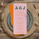 Menu de casamento contemporâneo brilhante e ousado. Este modelo de menu funky para você personalizar para o evento perfeito. Menu moderno com fonte retrô vintage.