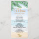 Este cardápio retrata uma cena romântica de palmas verdes, ondas oceânicas e duas estrelas-do-mar em uma praia arenosa. A carta se reverte para um bege quente com folhas de palma verdes brilhantes. O cartão de menu perfeito para o seu casamento na praia. Você pode clicar no link personalizar para adicionar seus próprios detalhes de menu. Isto é parte de uma suíte de casamento que pode ser totalmente personalizada.