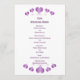 Purple hearts design wedding menu. Customise this heart menu with your wedding details. Should you require any help with customising then contact us through the link on this page. Purple heart design personalised wedding menu
