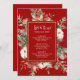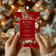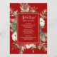 Vamos num banquete festivo! Design o seu próprio menu de Natal usando o nosso elegante quadro de férias floral e desfrute de uma refeição deliciosa com tipografia retrô branca. Tipografia branca personalizável em fundo vermelho.