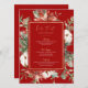 Vamos num banquete festivo! Design o seu próprio menu de Natal usando o nosso elegante quadro de férias floral e desfrute de uma refeição deliciosa com tipografia retrô branca. Tipografia branca personalizável em fundo vermelho.