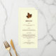 Em um fundo de marfim, uma folha de maple subtilmente monificada acentua este menu.