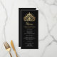 Para a jovem que está comemorando sua Quinceanera. Este elegante menu de efeito preto e ouro (não ouro real) é perfeito para a jovem que quer um evento legal, na moda e sempre tão brilhante. Este menu pode ser facilmente personalizado com a inclusão das iniciais do monograma da Quinceanera, que aparecerão dentro do efeito dourado tiara, nome e data e, por fim, do menu importante. Este menu é parte da Princesa Coroa Tiara em coleção de preto e ouro. Para qualquer personalização ou solicitação personalizada, entre em contato conosco via Zazzle. Observe que não é possível fazer nenhuma modificação nas informações personalizadas que você digita no menu. Se cometeu um erro, cancele e comece de novo.