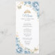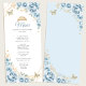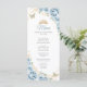 Cardápio fino para celebração de Quinceanera, ouro e branco. Recursos, fontes de script, borboletas douradas, rosas de aquarela e tiara. Perfeito para uma elegante celebração de glam estilo princesa. Personalize com seus próprios detalhes.