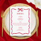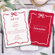 Limpo, moderno e sem esforço na moda, este menu Quinceañera apresenta uma tipografia vermelha ousada, um fundo branco comum e um arco desenhado à mão e uma borda para um olhar de coquete de tendência. É perfeito para um futuro convidado de honra que valoriza a simplicidade. Seja para um janto elegante ou um partido divertido, este design minimalista é fácil de personalizar com o seu nome, data e detalhes de eventos. Uma maneira chique de convidar amigos e família para comemorar seu aniversário.