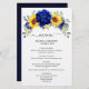 O menu de casamento elegante e moderno do país rústico contém girassol amarelo brilhante, péonias azuis reais, hálito de bebê, churrasco floral/coroa com folhas de eucalipto. Por favor, encontre mais designs e variações na minha loja de "blisswedingpaperie". E fique à vontade para me contactar para mais personalizações ou itens correspondentes.