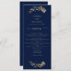 Menu Recepção de casamento azul de folhas Dourada Elega