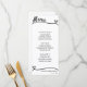 Menu de recepção de casamento em preto-e-branco com casal de caracteres. Personalize-o adicionando os detalhes do texto do evento.